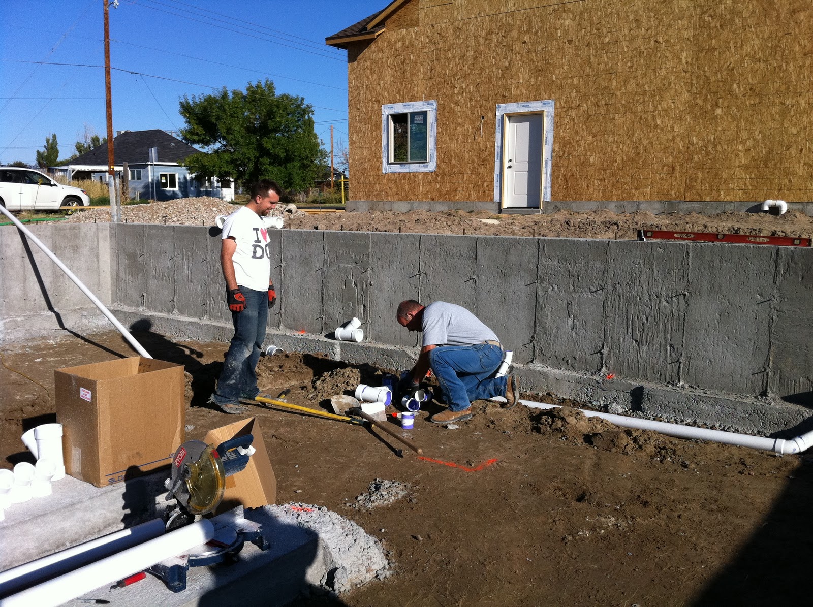 Casey and his dad doing the plumbing.
